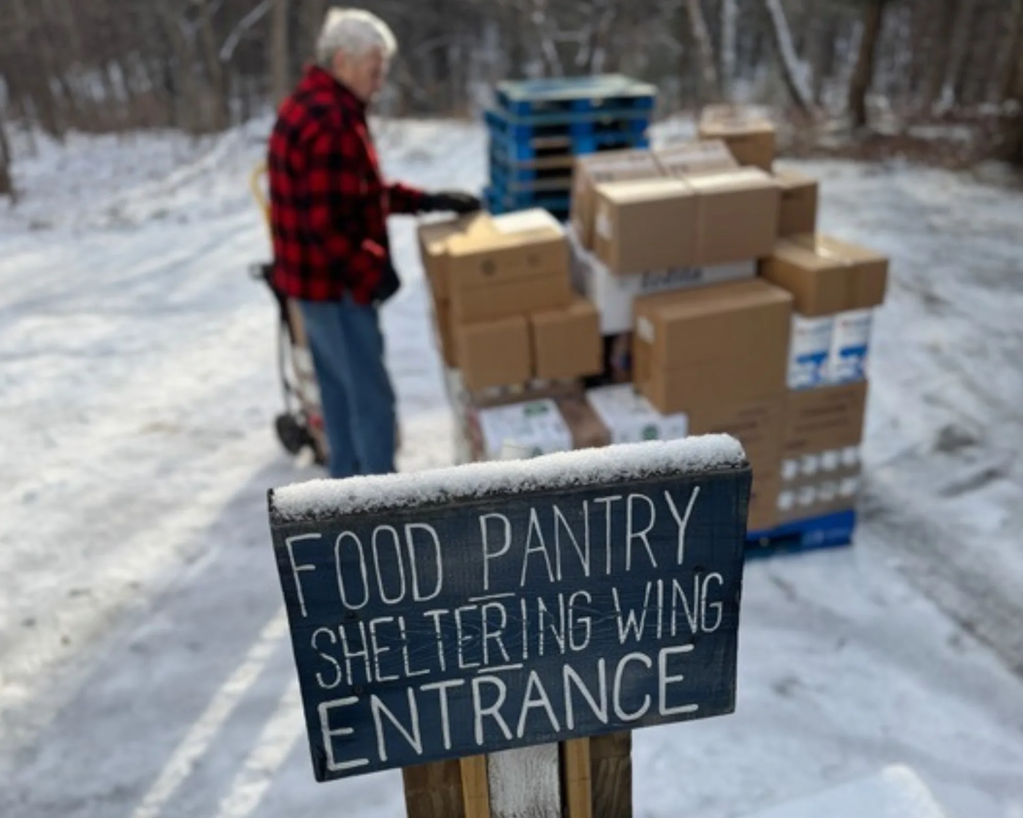 On a cold, early December morning, we set out with snow flurries flying as we made our way down the road. The drive began at 5:45 a.m. but Will had already been preparing for nearly two hours, stocking pallets of food and getting the truck warmed up and prepared for the day’s deliveries. Driving large Class A trucks requires extensive training, and drivers like Will demonstrate the expertise and patience needed to ensure that deliveries are made safely and efficiently, including navigating snowbanks and tight slippery roads, while backing into driveways of remote pantries. Not all locations have accessible entry points for larger trucks, so navigating these challenges in all types of weather is a key part of the job.
